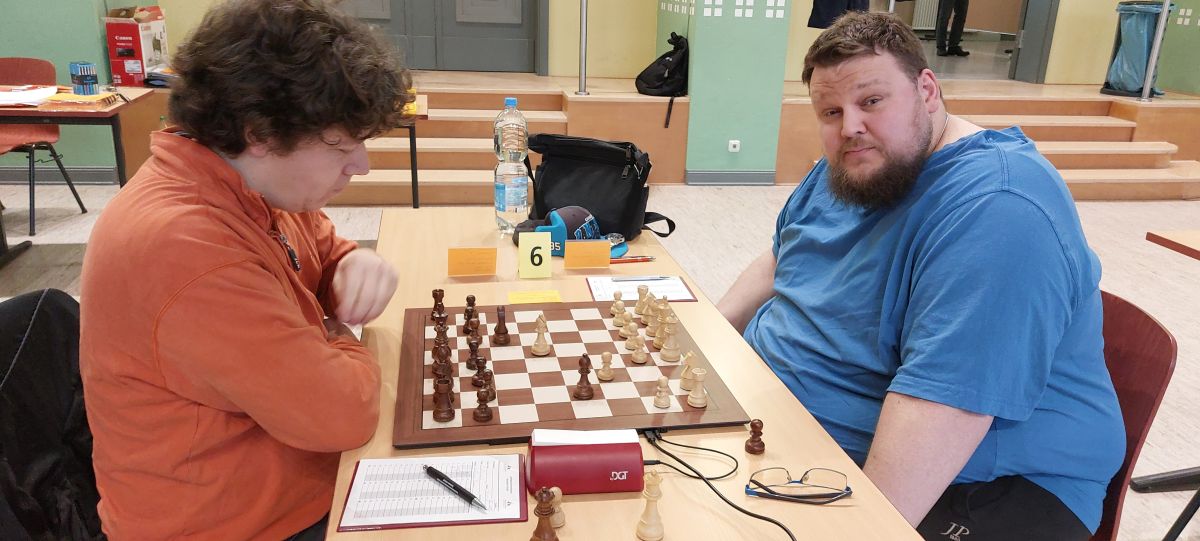 Sören Brüchner (Schwarz) gegen Sascha Schillig (Weiß)Die Erfahrungen belegen, wenn der Turnierstart gelungen ist, ist der weitere Verlauf problemfrei. Dies kann man auch für die LEM 2025 erwarten. Alle Teilnehmer sind sehr diszipliniert. Schachsportlich wird um jeden Punkt gerungen. Die Remisquote ist generell sehr niedrig und auch Kurzzeitremis gibt es kaum. Lediglich die Partie der beiden Stendaler Sascha Schillig gegen Sören Brüchner endete nach nur 4 Zügen.
