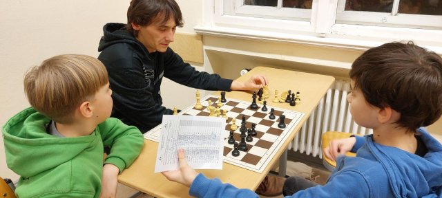 Kurioserweise gab es auch in der 4. Runde wieder das Endspiel Turm und Springer gegen Turm, das eigentlich theoretisch Remis ist. Diesmal war jedoch Valentin Udelnov der Unglückliche. Er machte im 80. Zug einen vermeintlichen Fehlgriff und sah plötzlich ein undeckbares Matt, was aber keines war. Erschrocken gab er auf und verschaffte somit Aaron Gröbel einen vollen Punkt. Aaron ist damit in der 5. Runde der Gegner des aktuellen Spitzenreiter Daniel Lippert.