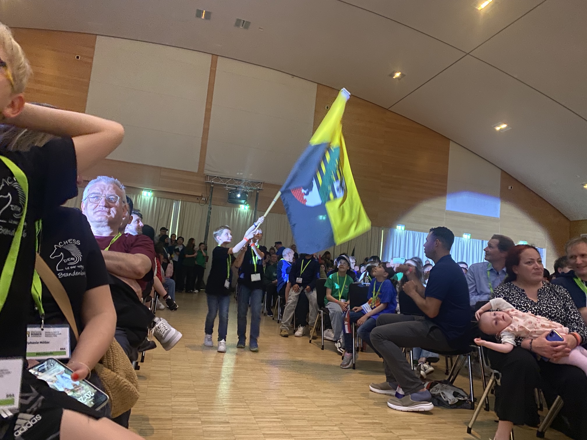 Am Abend füllte epische Musik die Halle, als die 17 Landesverbände mit Fahnen einliefen. Unser Team trug die Sachsen-Anhalt-Flagge mit Jones und Johannes ("Best Buddies") stolz voran. Offizielle Reden, Show-Acts und das traditionelle „Good-Luck-Rufen“ sorgten für Gänsehaut – jetzt war endgültig Turniermodus angesagt!