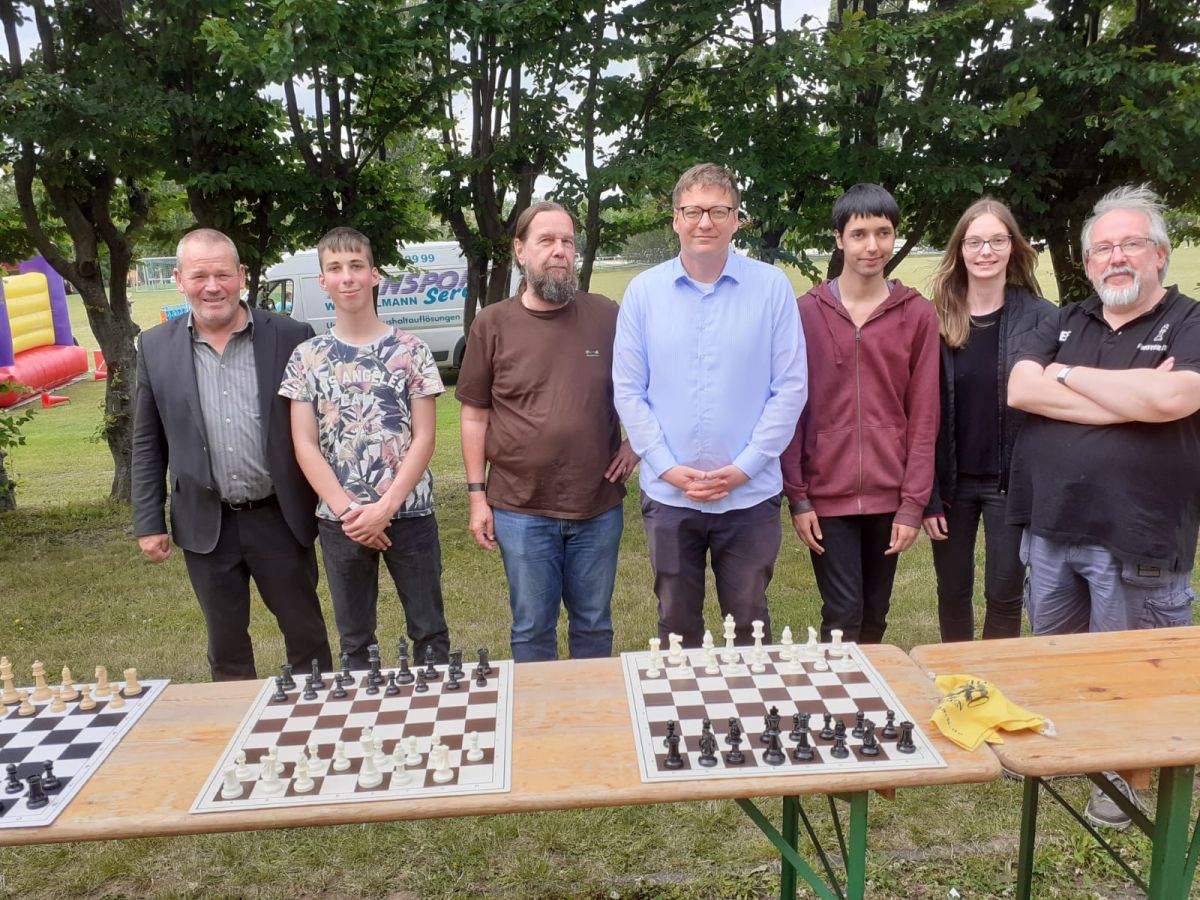 IM Ferenc Langheinrich mit Schachfreunden von Motor Zeitz und Bad Dürrenberg beim Simultan anlässlich 75 Jahre Motor ZeitzDen Besuchern der Landesgartenschau (LAGA) in Bad Dürrenberg wird am 09.09.2024 ein weiteres Highlight geboten. Der Internationale Meister Ferenc Langheinrich wird Simultan und Blitzschach spielen. Weitere Details könnt ihr dieser Ankündigung entnehmen.
