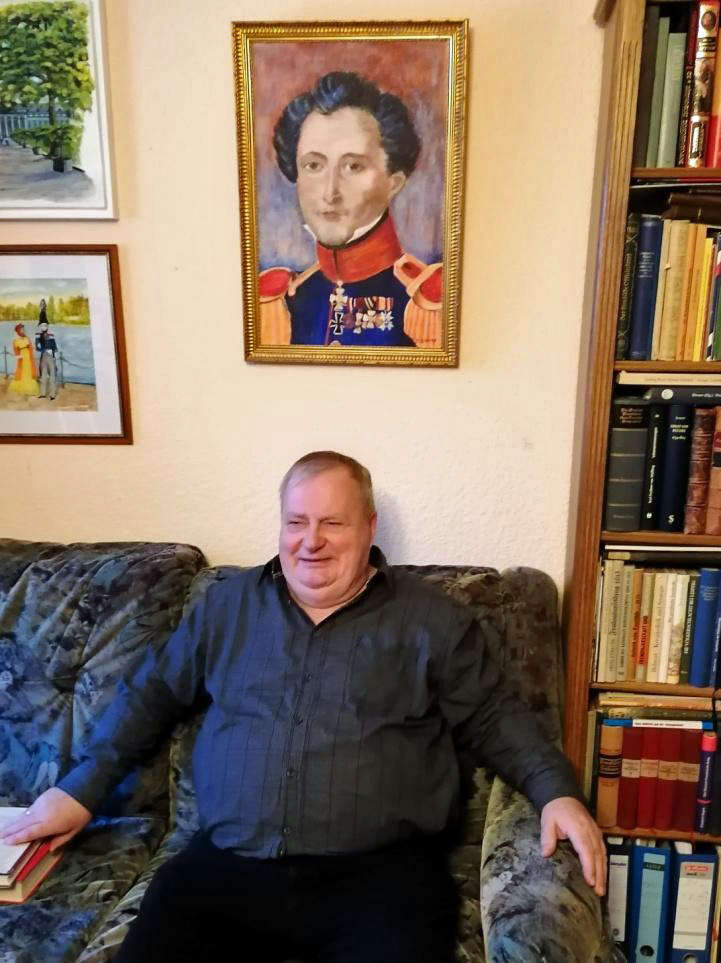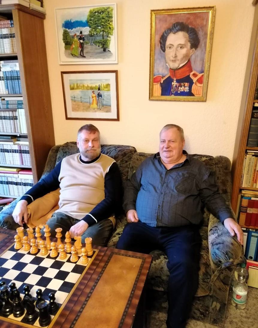 Bernd Domsgen vor dem Gemälde des Generalmajors Carl Philipp Gottlieb ClausewitzAm Dienstag, dem 10. Dezember, besuchten Heiko Thomaschewski und Konrad Reiß den Schachsammler und Clausewitz Forscher Bernd Domsgen in seiner Heimatstadt Burg. Der Ort liegt in der Nähe von Magdeburg, der Landeshauptstadt von Sachsen-Anhalt.