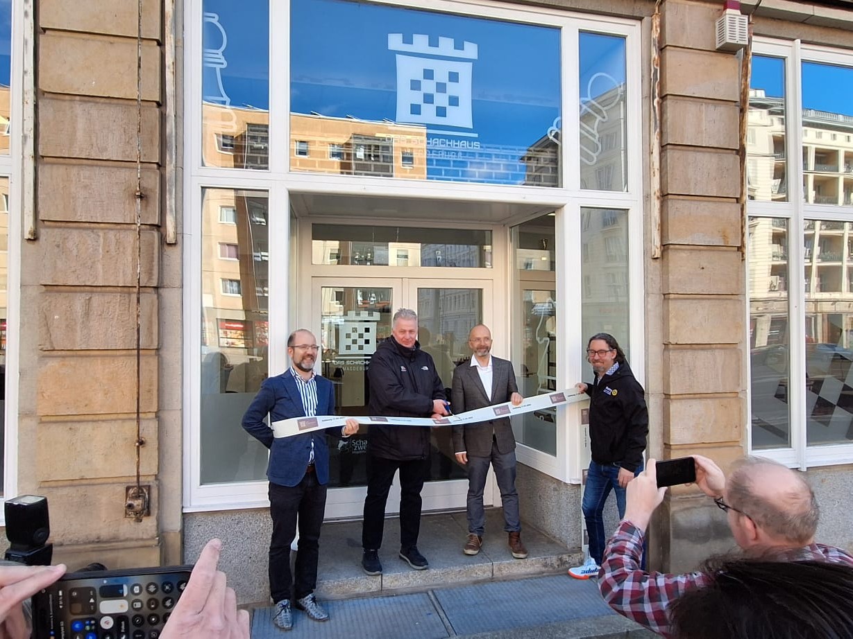 Unserer Landespräsidentin Claudia Meffert wurde die Ehre zu Teil, einen der Trainingsräume zusammen mit dem niedersächsischen Landespräsidenten Michael S. Langer mit Unterstützung des Vorsitzenden der Schachzwerge Magdeburg Jens Windelband und unserem Geschäftsführer Michael Zeuner zu eröffnen.