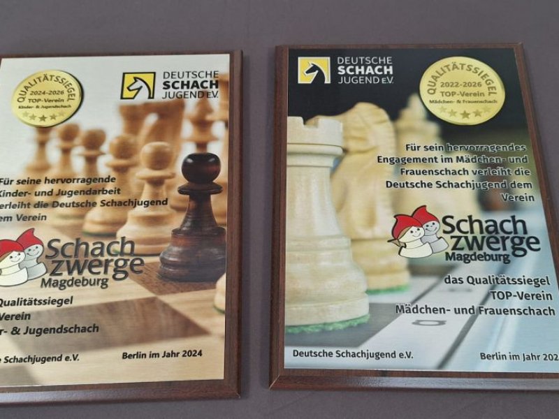 Auch bekamen die Schachzwerge Magdeburg zwei Auszeichnungen der Deutschen Schachjugend vom Öffentlichkeitsreferenten Niklas Mörke überreicht (TOP-Verein Kinder- und Jugendschach und TOP-Verein Mädchen- und Frauenschach).